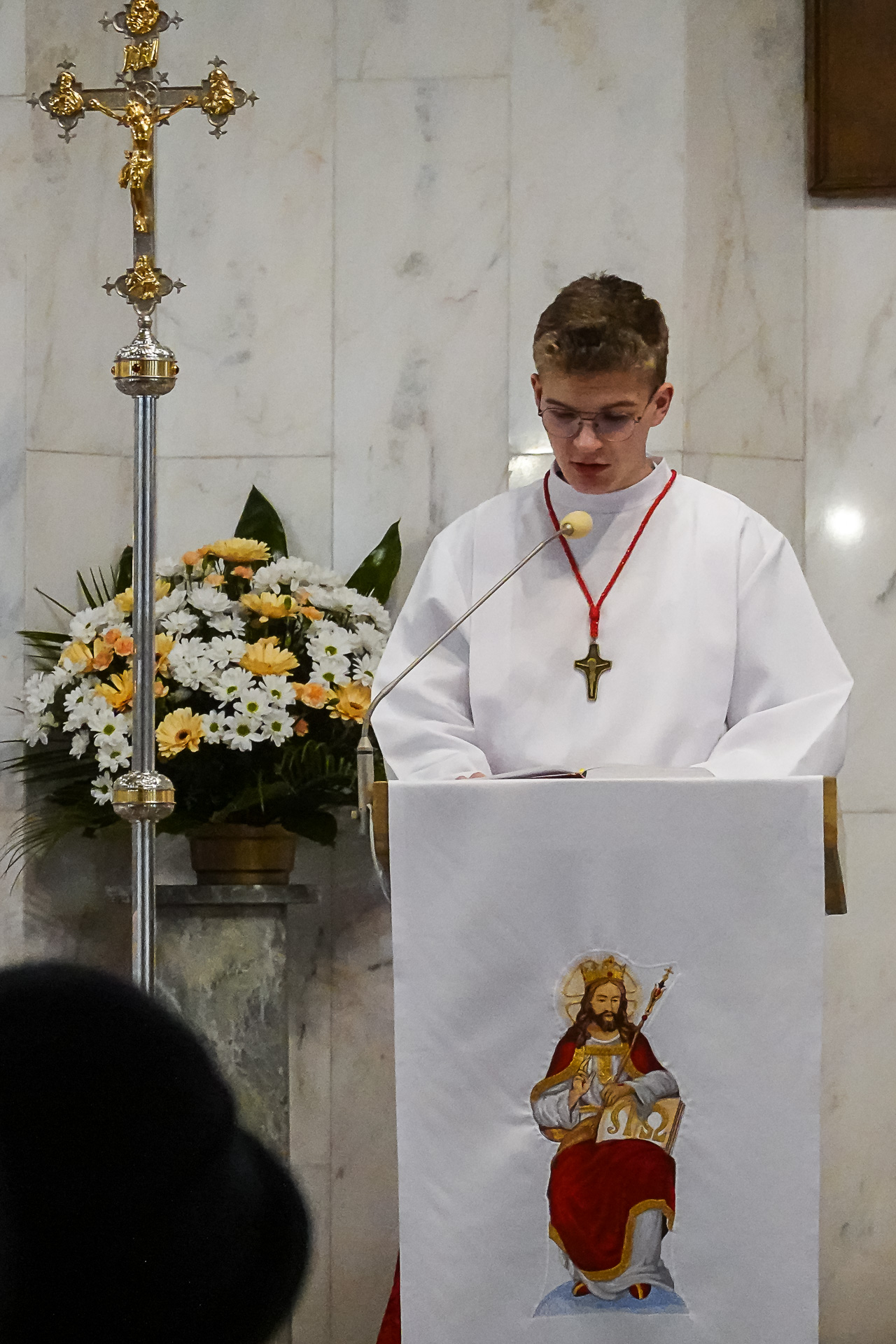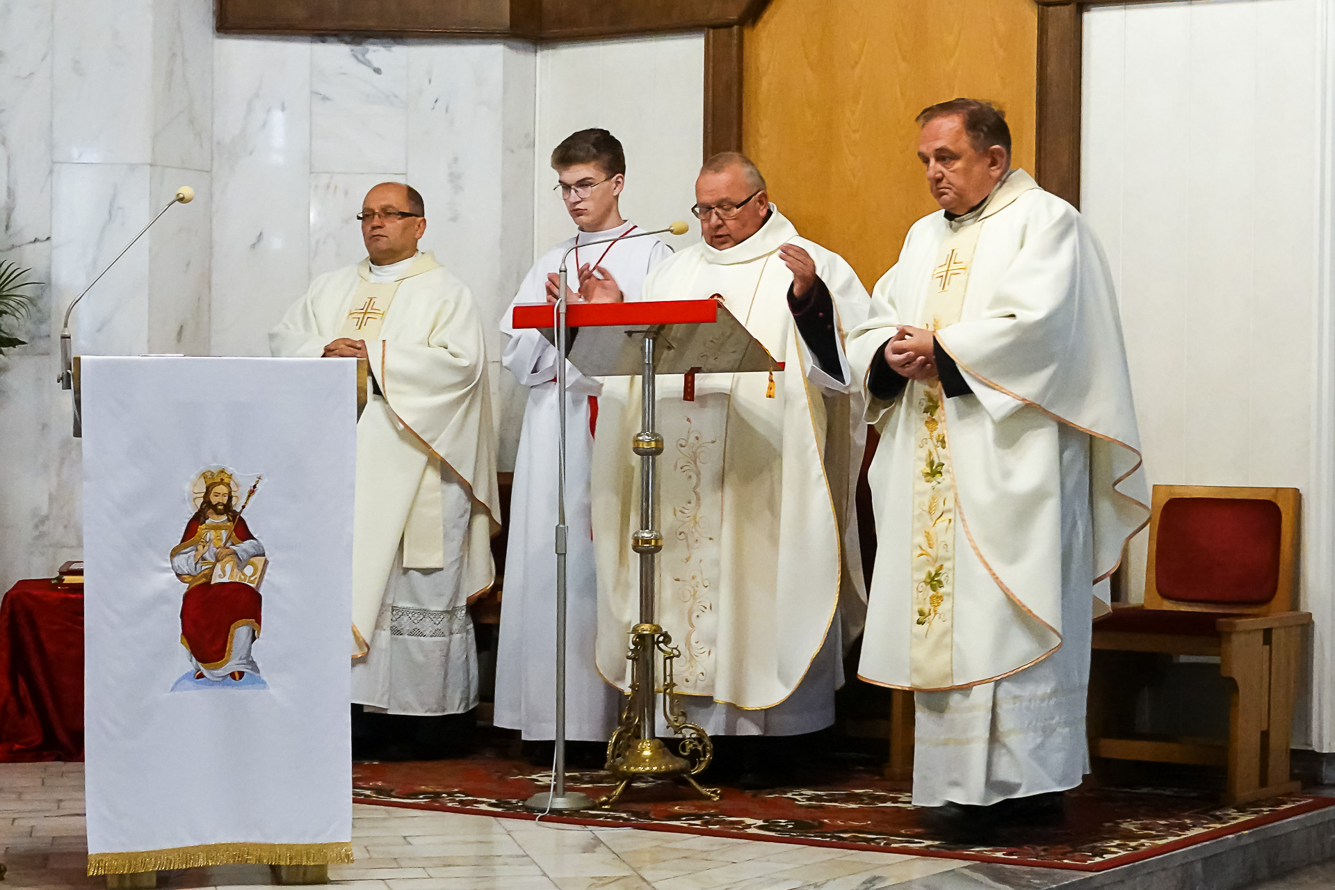 24.11. 2024, w czasie uroczystej sumy, obchodziliśmy święto patronalne naszego kościoła - odpust parafialny ku czci Jezusa Chrystusa Króla Wszechświata. Uroczystej mszy świętej koncelebrowanej przewodniczył ks.Kanonik Zbigniew Kulesza. W swojej homilii przypomniał historię naszej świątyni i podkreślił wartość wspólnoty, którą tworzą modlący się w tym świętym miejscu.